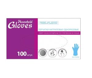 Перчатки Household Gloves нитриловые текстурированные на пальцах голубые р. М №100