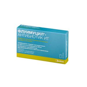 ФЛУИМУЦИЛ-АНТИБИОТИК ИТ (лиоф. д/приг.р-ра д/инъекций и ингаляций 500 мг во фл. в компл. с раствор. (вода д/инъекций в амп. 4мл) №3)