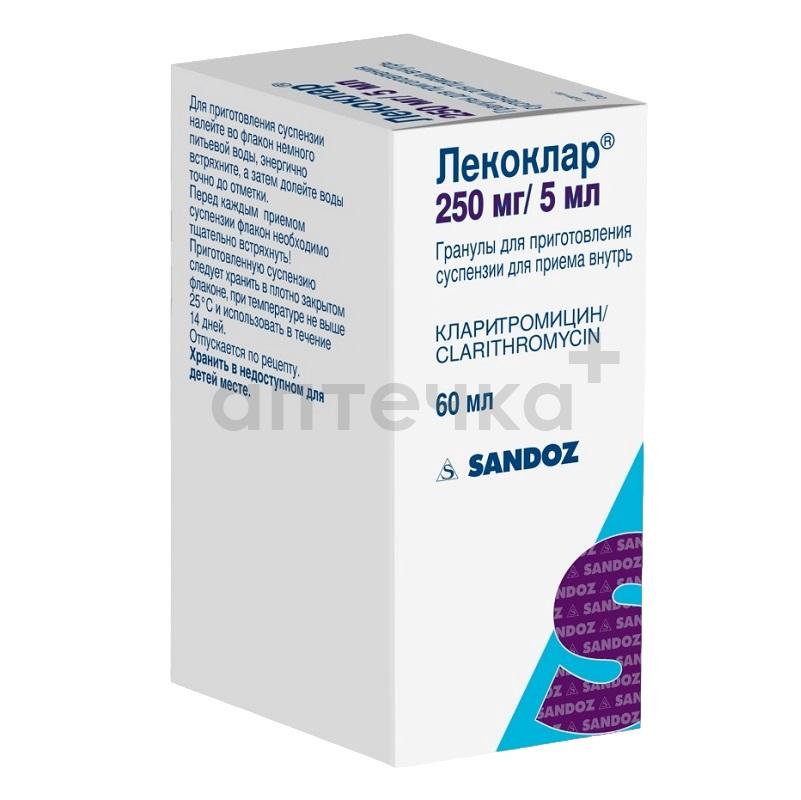 ЛЕКОКЛАР (гранулы д/приготовления сусп. д/приема внутрь 250 мг/5мл фл. 60 мл №1)