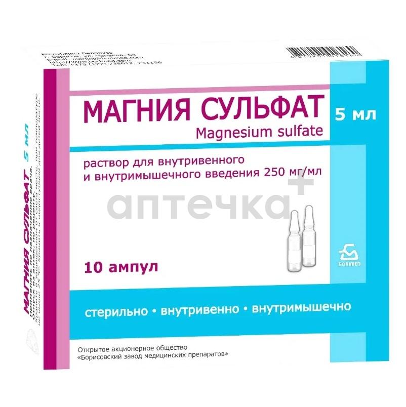 МАГНИЯ СУЛЬФАТ (р-р д/ин. 250мг/мл амп. 5 мл №10)