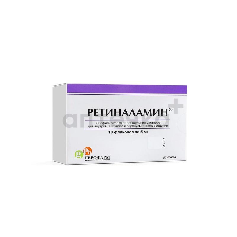 РЕТИНАЛАМИН (лиофилизат д/приг. р-ра д/внутримышечного и парабульбарного введения 5 мг фл. №10)