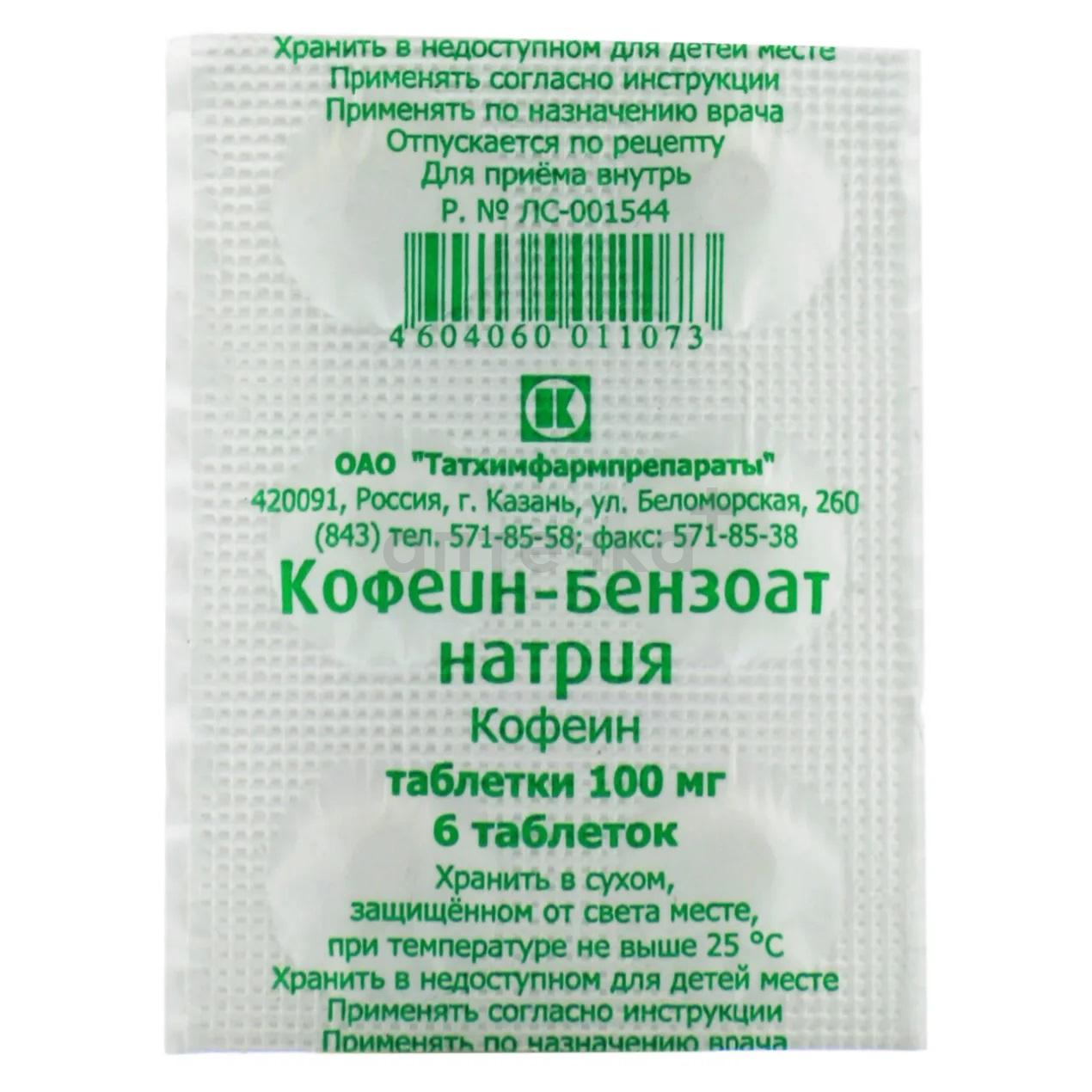КОФЕИН-БЕНЗОАТ НАТРИЯ (табл. 100 мг №6)