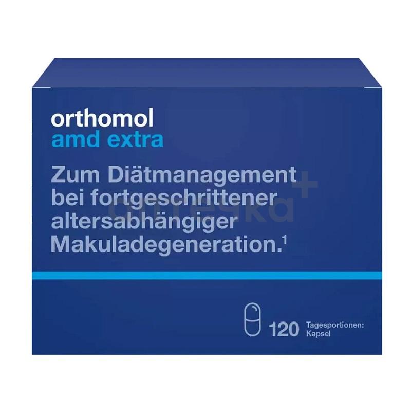 Ортомоль АМД Экстра рекомендуется в качестве биологически активной добавки к пище - дополнительного источника дополнительного источника витаминов С и Е, цинка и меди, источника лютеина и зеаксантина, как эффективное средство борьбы с прогрессирующей возрастной макулярной дегенерацией.