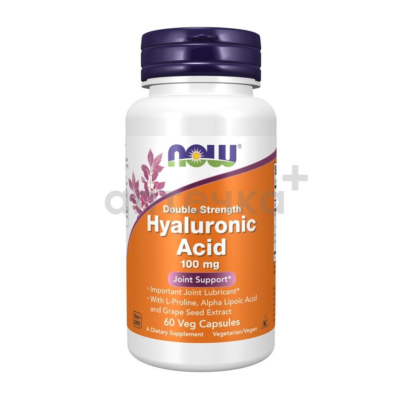 NOW® Гиалуроновая кислота двойной силы рекомендуется в качестве биологически активной добавки, как дополнительный источник гиалуроновой и липоевых кислот, регулирует водный баланс в соединительных тканях, придает кожным покровам эластичности, упругости, мягкости, участвует в выработке коллагена, который также необходим возрастной коже, способствует быстрой регенерации поврежденных клеток организма, способствует противовоспалительным процессам организма.