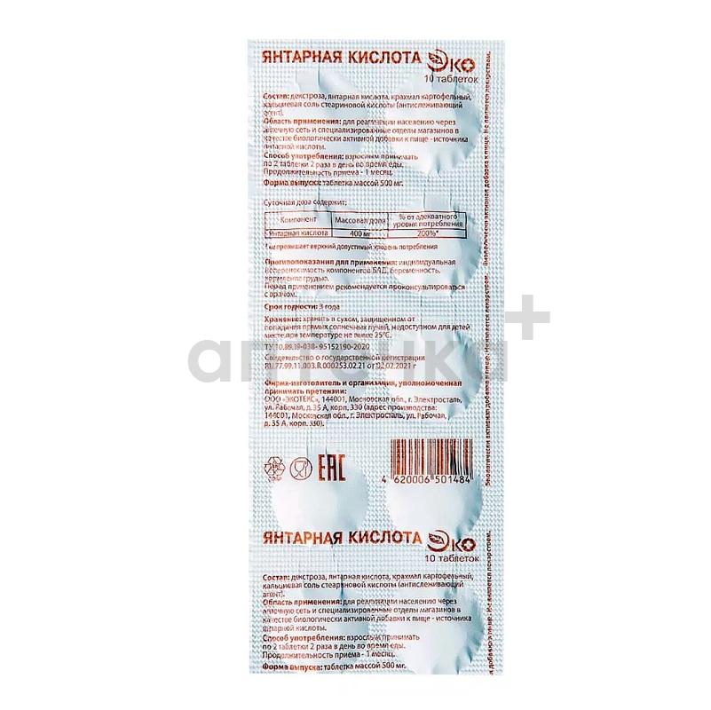Янтарная кислота ЭКО (БАД) (табл. 500 мг №10)
