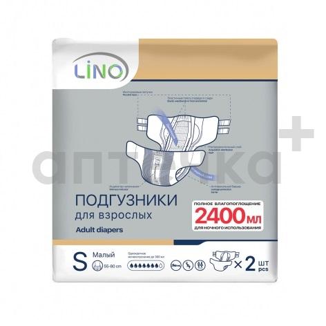 LINO Подгузники для взрослых Small №2, полная влаговпитываемость 2400 мл (день+ночь)