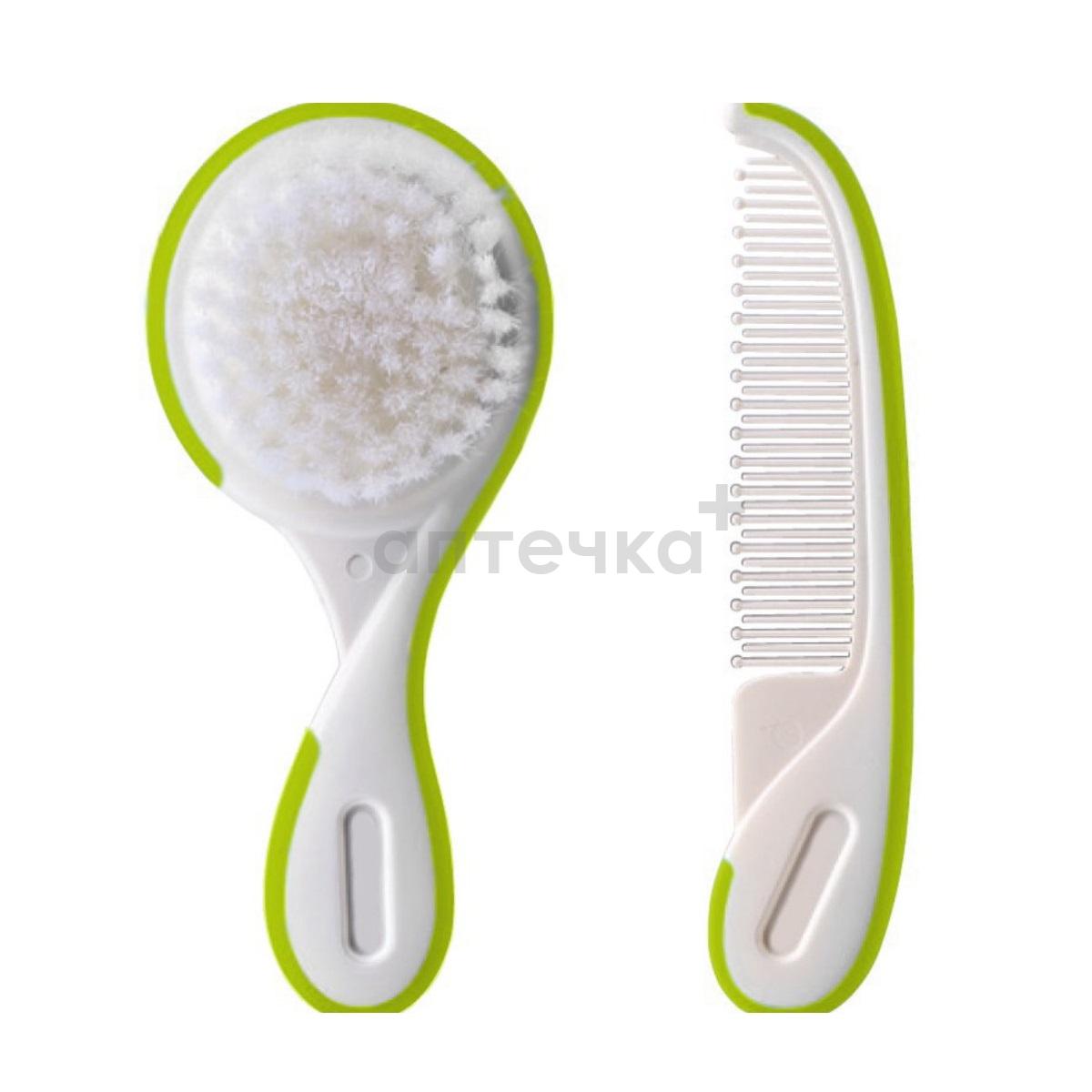 Удобный набор из детской щеточки и расчески - неотъемлемый атрибут в ежедневном уходе за нежными волосами вашего малыша. Тончайшие нейлоновые нити позволяют делать мягкий массаж при расчесывании. Мягкие щетинки обладают антистатичными свойствами и не электризуют волосы. Благодаря эргономичным прорезиненным ручкам щеточку и расческу удобно держать как во взрослой руке, так и в детской ладошке, что стимулирует малыша учиться самостоятельно расчесывать волосы. Закругленные зубчики расчески предотвращают вероятность травмирования нежной кожи малыша. Перед первым применением хорошо вымойте изделия в теплой воде с нейтральным моющим средством, тщательно ополосните и высушите в хорошо проветриваемом помещении.