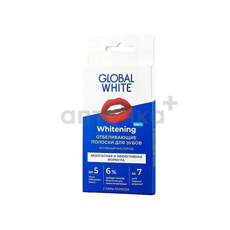 Глобал Вайт Полоски отбеливающие для зубов Активный кислород 2 саше