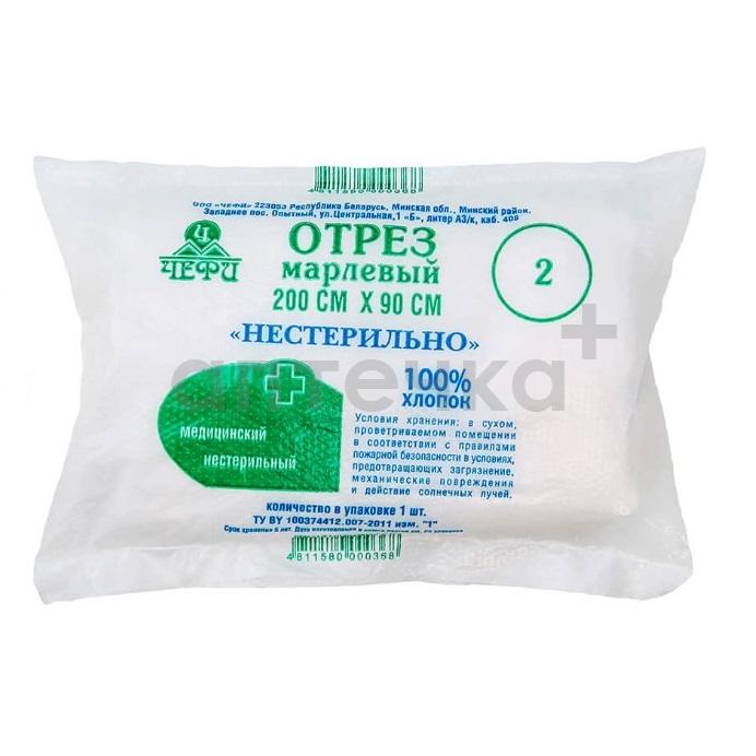 Отрез марлевый медицинский нестерильный (200×90 см) удобен для выполнения повязок с использованием бинта. Оптимальные размеры марлевых отрезов позволяют широко использовать их не только в медицине, но и для бытовых целей. Марля обладает высокой прочностью и гигроскопичностью. Применяется для изготовления операционно-перевязочных средств.